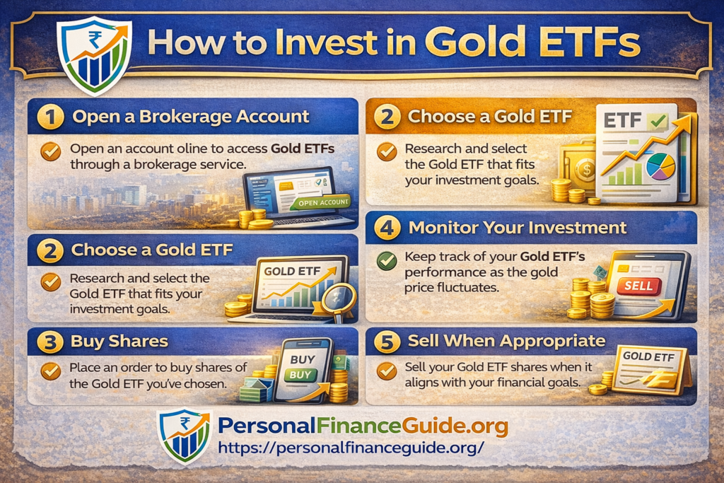 You can easily invest in Gold ETFs using a brokerage account. Follow these steps to invest in Gold ETFs. Get a Brokerage Account. You will need to create a brokerage account with a bank or other financial institution that lets you trade ETFs in order to invest in Gold ETFs. A lot of internet brokers let you trade ETFs for cheap fees.
